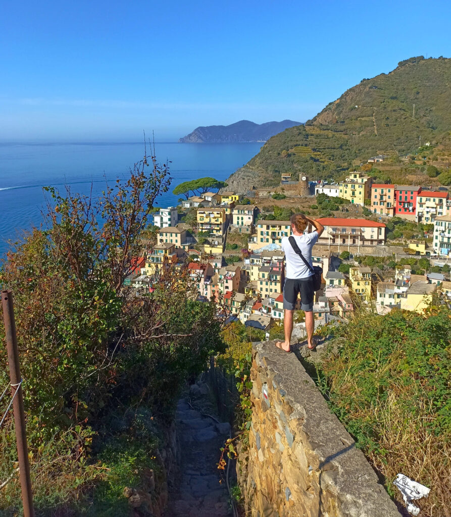 Allerheiligen und somit ein verlängertes, arbeitsfreies Wochenende für Sven steht bevor. Dieses möchten wir nutzen. Auf geht’s an die italienische Riviera. Auch wenn wir touristische Orte lieber meiden, sind wir doch neugierig auf die berühmten Cinque Terre. Die fünf malerischen Fischerdörfer erstrecken sich entlang der ligurischen Küste und stehen unter UNESCO-Weltkulturerbe. Riomaggiore, das erste der fünf, verzaubert uns am ersten Tag bereits mit seinem Charme. Wie Bausteine stapeln sich die bunten Häuschen übereinander, durch die engen Gassen strömt der Duft von frisch gebackenem Foccacia und Espresso. Das kristallklare, blaue Wasser lädt Ende Oktober immer noch den einen oder anderen zum Schwimmen ein. Wir schlendern umher und genießen die Ruhe und Aussicht, die wir auf den Wegen weiter oberhalb des Trubels finden. Da der Wanderweg ins nächste Dorf gesperrt ist, treten wir am Nachmittag unseren schweißtreibenden Aufstieg zurück zum Parkplatz oben am Berg an. Dort wartet Giorgio geduldig auf uns.
