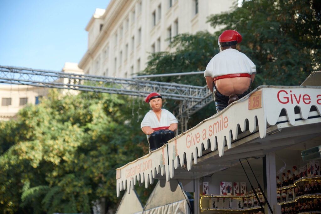 Dort vorne kündigt sich ein kleiner Platz an. Weihnachtslichter leuchten, ein paar Buden sind zu sehen. Juhu! Das muss der Weihnachtsmarkt sein! Enthusiastisch marschieren wir darauf los. Hier gibt es Krippenfiguren. An der nächsten Bude auch. Was wohl die darauffolgende zu bieten hat? Krippenfiguren! „Lass uns mal die andere Reihe ansehen“, meinen wir zueinander. Nach dem Stadtbummel steigt die Lust auf eine schöne Tasse Glühwein und einen Snack. Doch auch dort gibt es nur Zubehör für die heilige Stätte. Das reinste Krippenparadies! Eine Figur ist jedoch besonders. Sie fällt uns immer wieder auf, denn sie zeigt ihren nackten Hintern und ist gerade dabei, ihr Geschäft zu verrichten. Wie wir erfahren, handelt es sich um den Caganer – zu Deutsch unverblümt den „Scheißer“. Ursprünglich noch ein Bauer, zeigt die Figur heute alle möglichen realen und fiktiven Personen: Messi, Merkel, Mr. Bean, Batman, Lady Gaga. Die Buden sind voll damit.