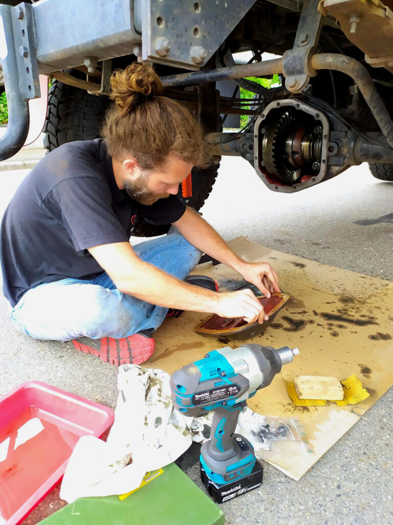 Weitere Baustellen: Differenzialsperren, Startprobleme, Elektronik, Handbremse, sämtliche Flüssigkeiten, Fenster, Luftansaugung…
