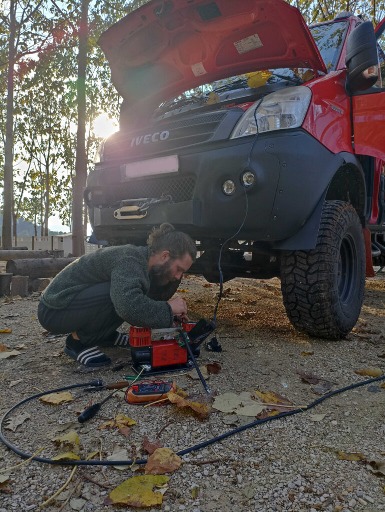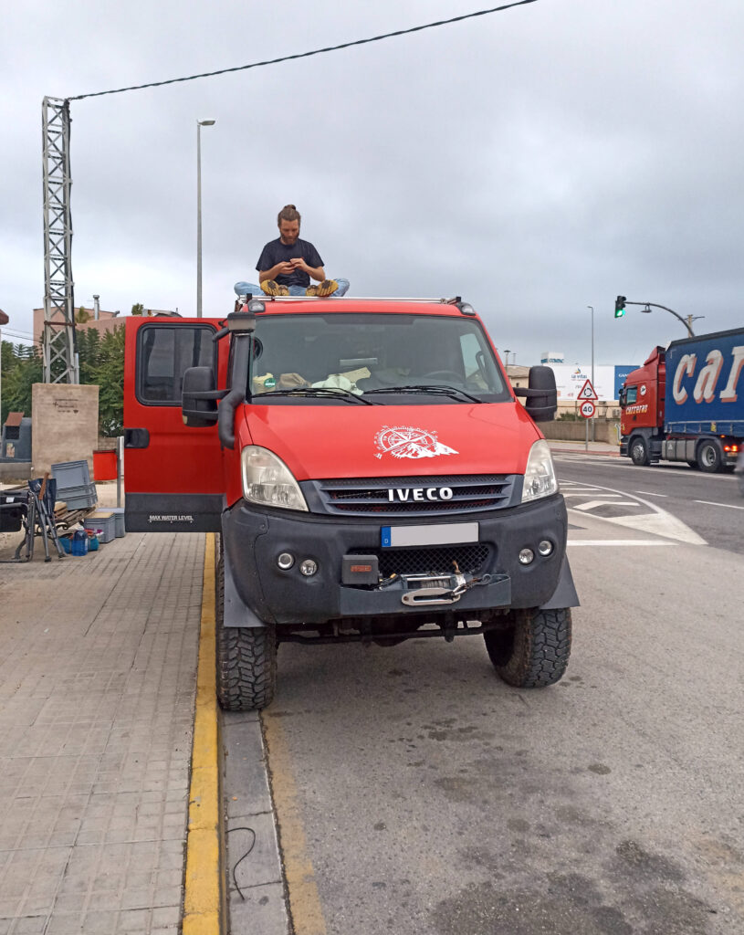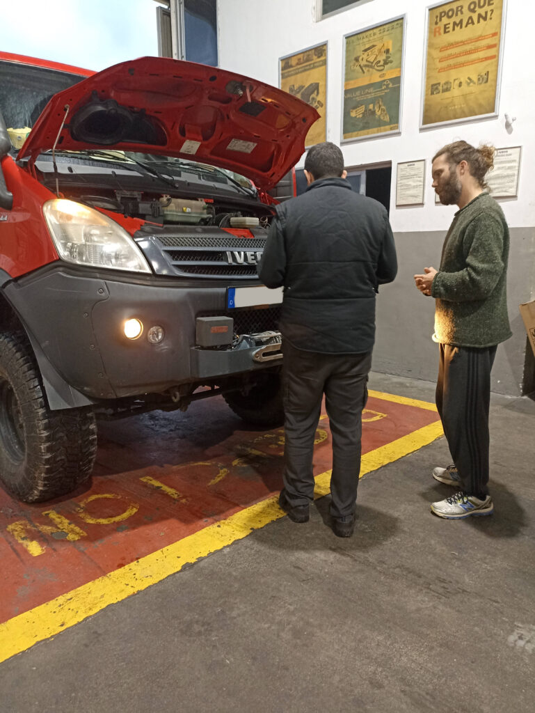 Nun aber zum Sachlichen. Das Diagnosegerät wird angesteckt. Wir warten gespannt. Und dann, mit ein bisschen Spanisch, Händen, Füßen und Google Translater erfahren wir schließlich, was unserem Iveco fehlt: Kaputte Glühkerzen und ein paar spinnende Sensoren. Alles nicht schlimm. Fahrt einfach weiter. Wir atmen auf und mit einem erleichternden Grinsen im Gesicht düsen wir mit Giorgio davon.