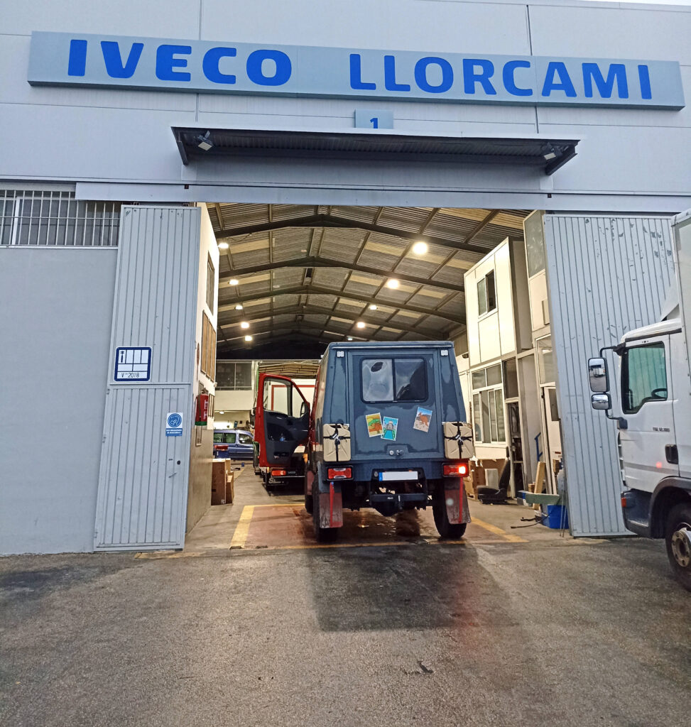 Giorgio hat sich dazu entschlossen, ein paar Lichter für die Weihnachtszeit auf dem Display leuchten zu lassen. Bei der Meldung „Motor sofort abstellen und prüfen lassen“ fahren wir vorsichtshalber doch mal zur Iveco-Werkstatt in Gandia. Unser Problem ist zunächst zweitrangig. Sobald wir die Inspektionsfläche befahren haben, tauchen plötzlich sämtliche Mitarbeiter der Firma auf. Die Mechaniker kriechen unter den Autos hervor, andere Fachkräfte hören zu arbeiten auf. Ihre Augen strahlen und sind ganz auf uns gerichtet. Besser gesagt auf Giorgio. Die sprachliche Verständigung ist schwierig, zwei junge Burschen meinen mit ihren wenigen Englischkenntnissen nur: „It’s so beautiful. I think I’m in love.“ Unser roter Freund hat es ihnen richtig angetan.